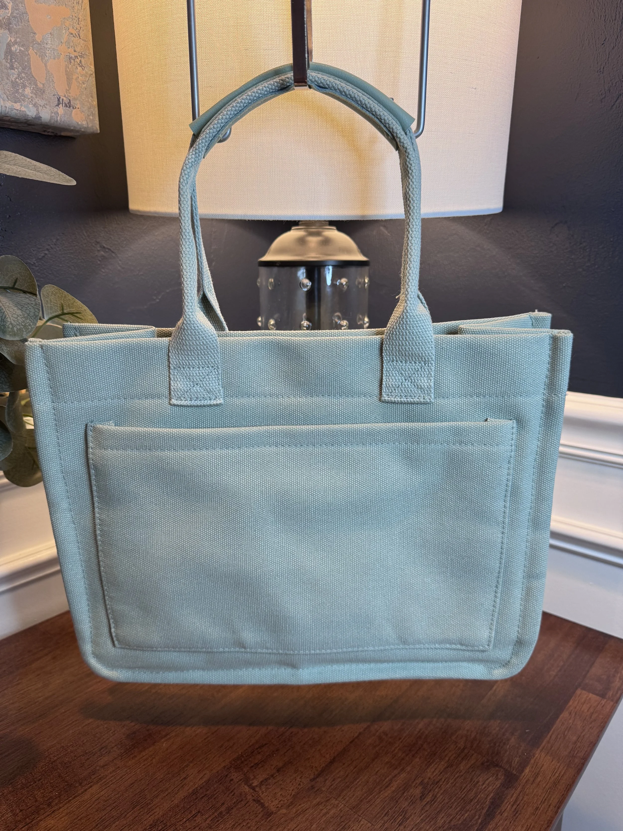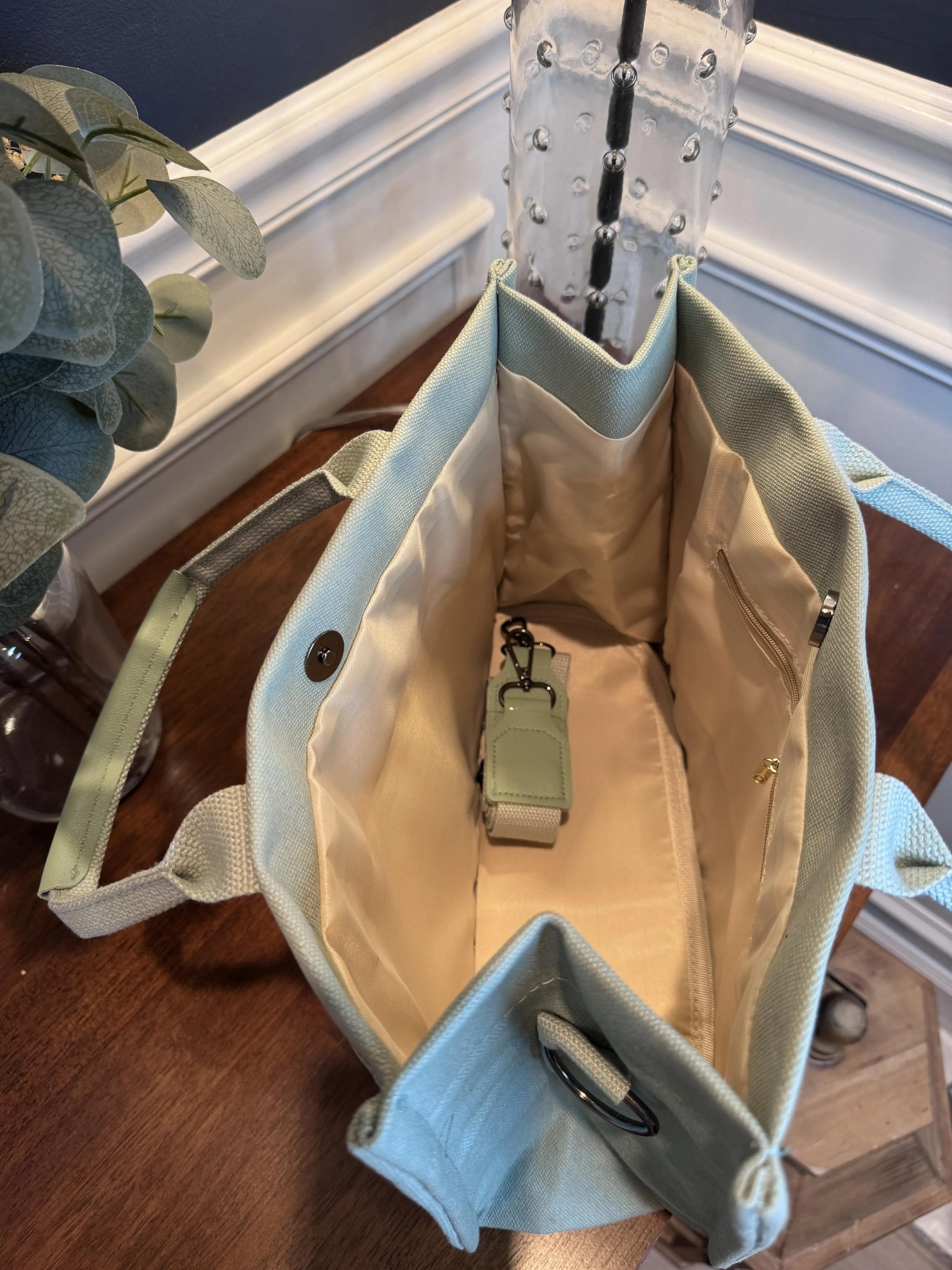 This beautiful soft green messenger style canvas tote bag has an adjustable, removable crossbody strap. It utilizes a lot of space and is suitable for books, documents and daily necessities. In addition to daily use, it is also suitable for work, college, and can also be used to carry a laptop.